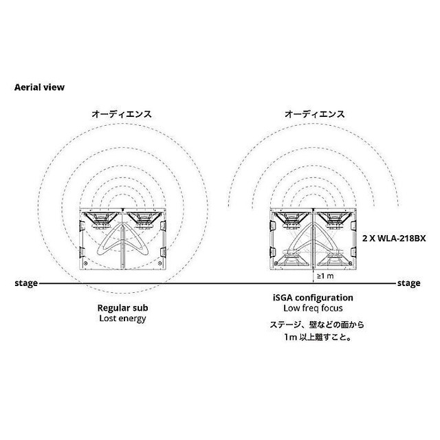 Wharfedale Pro「WLA-218BX は、iSGA(Inverted Stack GradientArray)構成に対応したデュアル18″サブウーファーです。定評あるReason-X の4.0 インチボイスコイル18 インチサブウーファードライバーを採用し、35Hz 付近のブーストにより、極上の低音を実現します。フロントグリルのspeakON端子は、カーディオイドサブとして使用する場合に便利です。