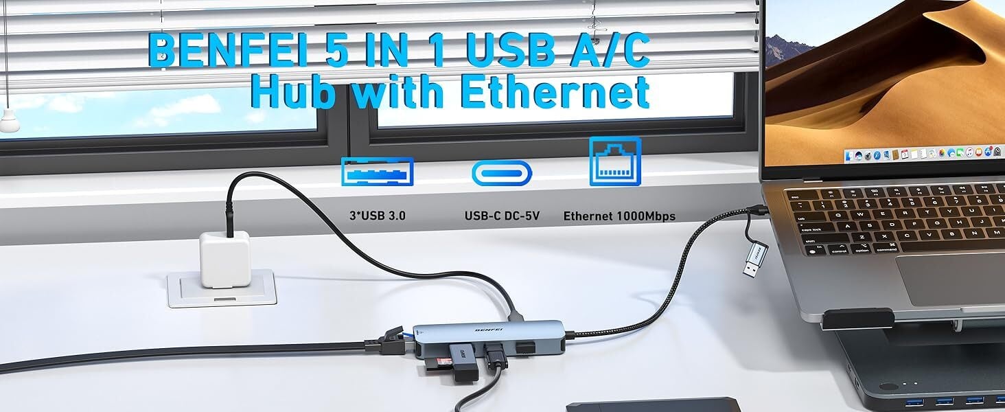 ✅【特徴】BENFEI USB Type-C/Type-A ネットワークアダプターは、USB-C デバイスと有線ネットワーク間のプラグアンドプレイギガビットイーサネット接続を提供し、3 つの追加 USB 3.0 ポートでノートパソコンを拡張します。5V/2A USB-C 電源スロットを備えた BENFEI ハブは、USB アクセサリにさらに多くの電力を供給できます。