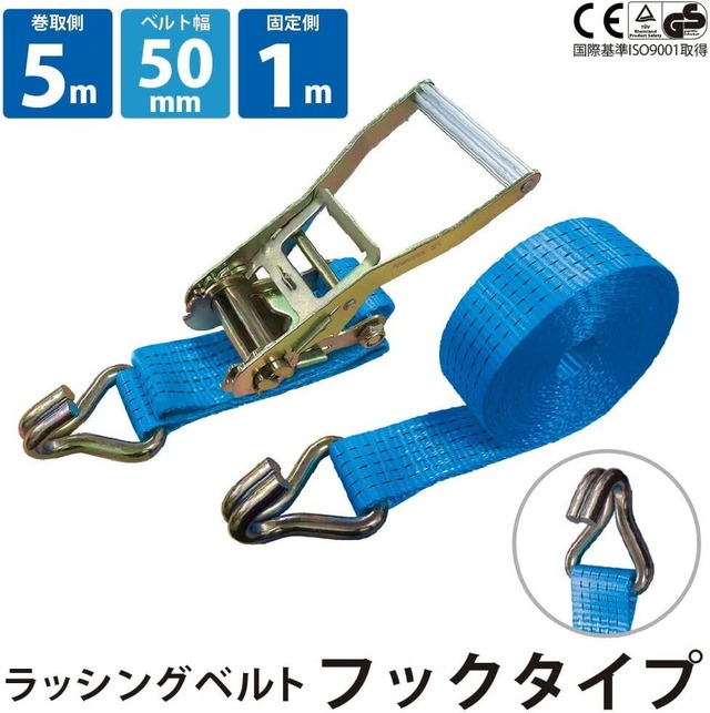 ラッシングベルト ブルー フック 1m 5m 単品 破断荷重 4t 4000kg ベルト幅 固定側 巻側 ラチェット ベルト