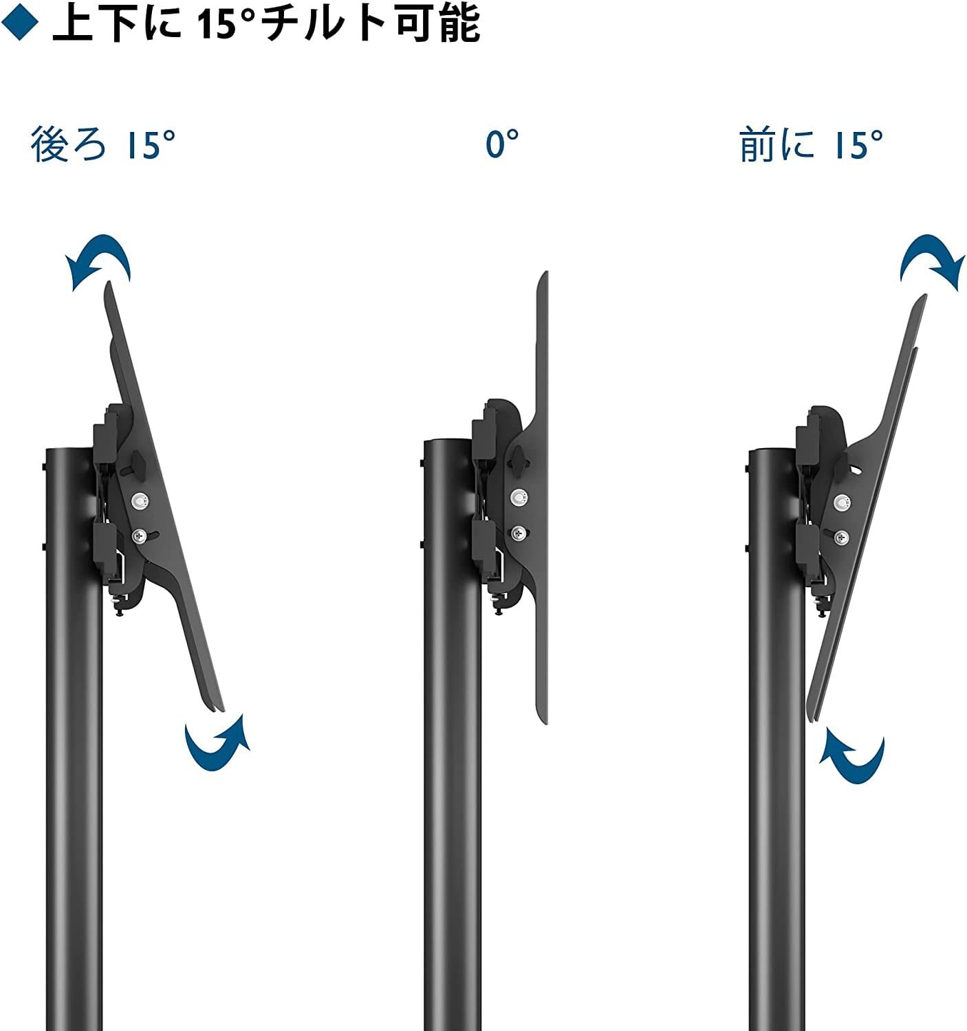 【高さ調整可能】壁寄せモニタースタンド完璧な視野角を見つけるように、ブラケットは+15°/-15°にチルトできます。高さは1080mmから1580mmまでに調整可能です。テレビスタンドはメディア棚板も付きます。棚板の高さは300mmから900mmまでに調整できます。棚板のサイズは460mmx300mmで、耐荷重は10Kgです。