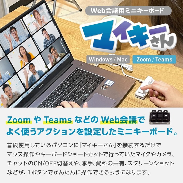 Windows版 マイキーさん 6キー ZOOM用 ミニキーボード(マイク/ビデオ/挙手/チャット/共有/スクリーンショット)Web会議用 Zoom オンライン会議