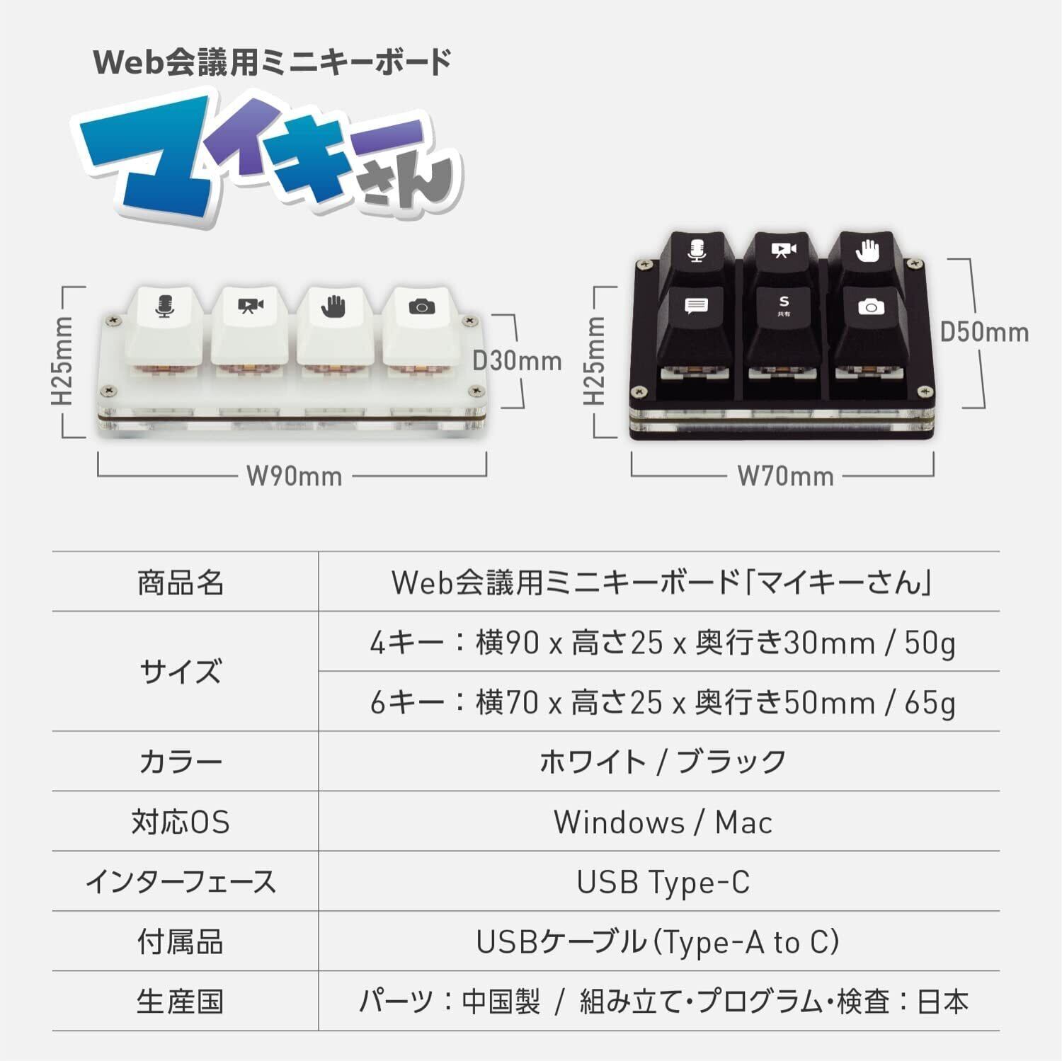 Windows版 マイキーさん 6キー ZOOM用 ミニキーボード(マイク/ビデオ/挙手/チャット/共有/スクリーンショット)Web会議用 Zoom オンライン会議 オンライン授業 オン飲み Web会議 ズーム ブラック 日本製