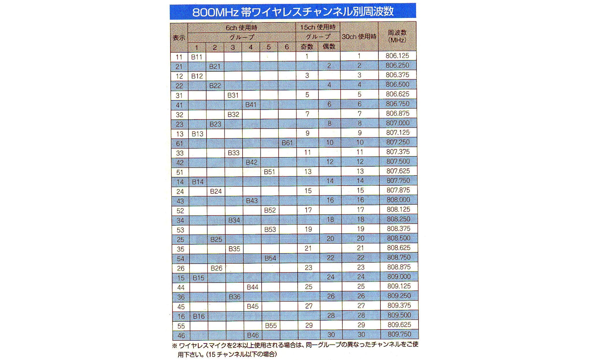 送信周波数 806.125 MHz~809.750 MHz(0.125 MHz間隔30波)