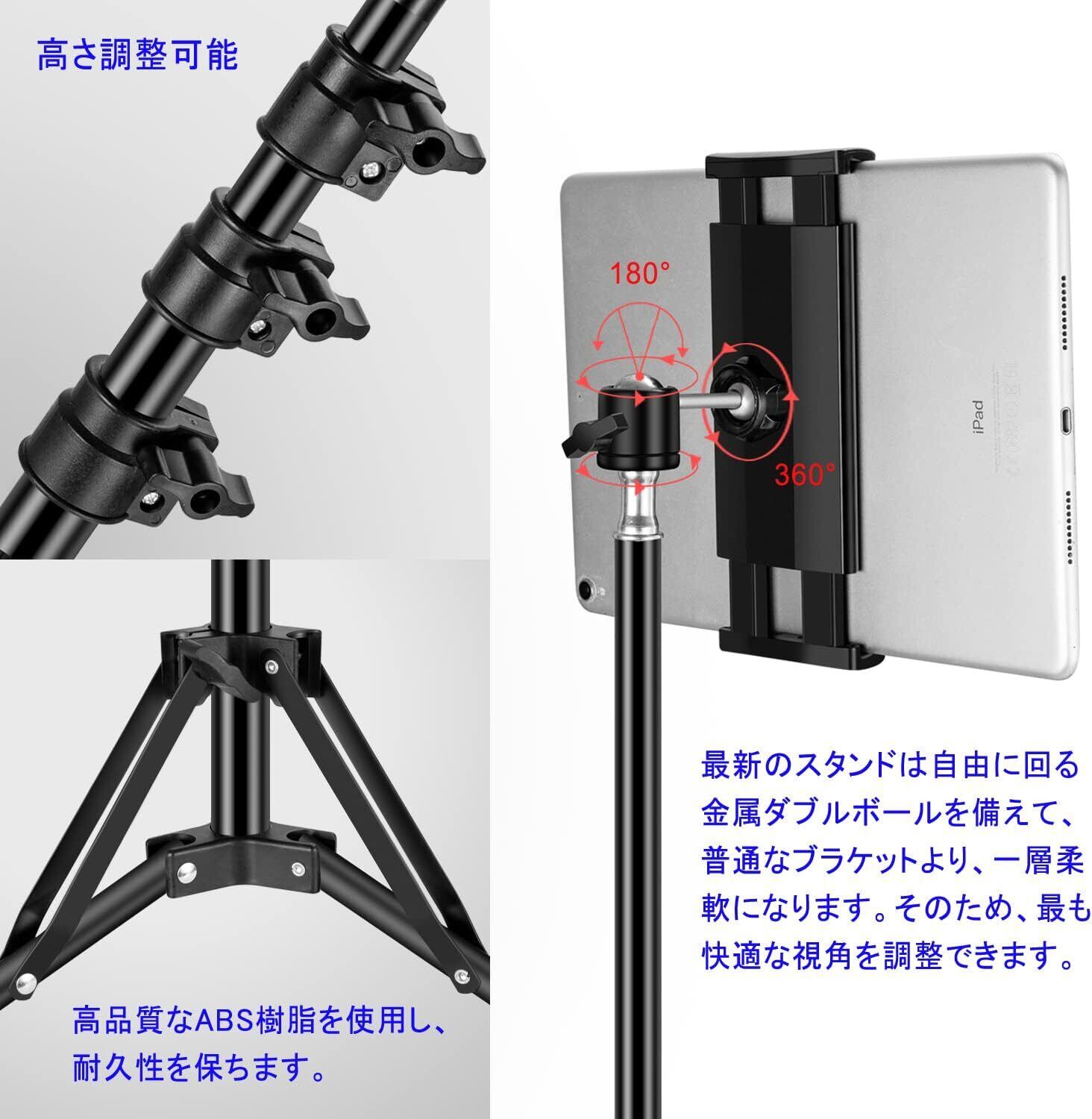 ipad スタンド 三脚 タブレット 両用 スマホ オンライン授業 ipad 三脚 寝ながら 頑丈なアーム付き 360回転 土台強化 安定性ベットスタンド 4.5〜12.9インチに対応 (iphone/ipad/ipad mini/ipad Pro/N-Switch/Kindle等多機種)